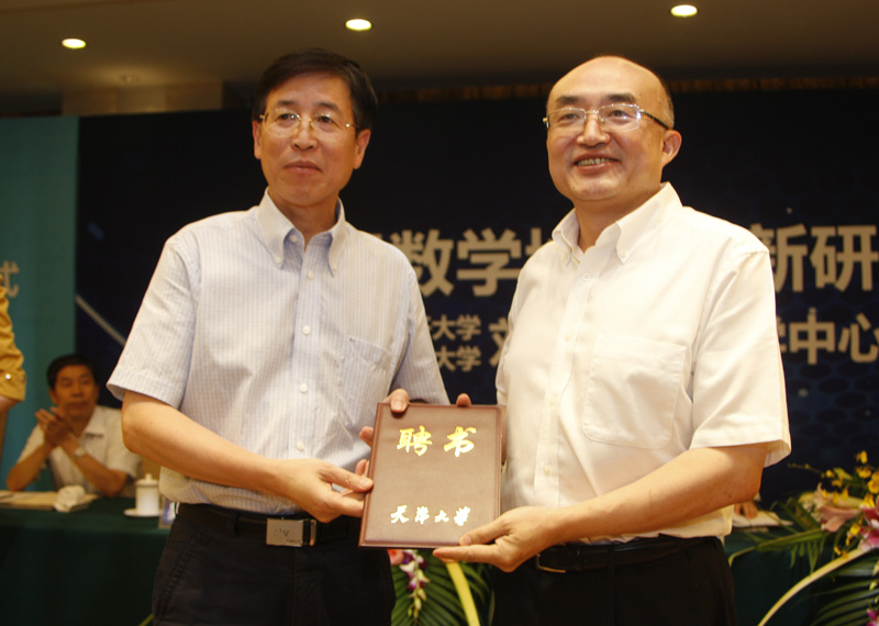 仪式现场,天津大学校长李家俊分别向葛墨林院士和陈永川院士颁发了天津大学应用数学中心名誉主任和主任的聘书。