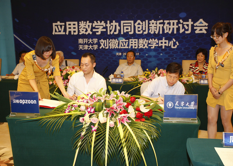李家俊和彭海帆分别代表天津大学和汉柏科技有限公司签署了成立天津大学-汉柏科技应用数学联合实验室的协议。汉柏科技有限公司作为一家源于美国硅谷的中国高科技企业,为全球领先的行业深度定制化、云计算解决方案提供商,提供业界领先的云、网、端全产业链的产品及系统整合解决方案。2011年营收突破10亿人民币,年复合增长率超过40%,在世界十多个地区设立了多个分支机构,成功典范应用遍布全球30多个国家和地区。汉柏科技有限公司每年将为应用数学联合实验室提供不少于200万元,5年内不少于1000万元的研究经费,从双方现有先进成熟的技术中,探索符合双方发展方向的科研成果,通过成果的共享或转让,实现社会生产力的转化。建立面向汉柏科技的科技研发—人才培养—技术服务综合平台,组织双方的技术力量开展科研攻关、科技成果转化和生产技术服务活动。构建共性技术与企业关键技术及产学研合作交流创新平台,加强产学研合作,全面提升核心竞争力。